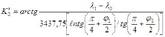 где разность долгот l1 - l0 выражается в угловых минутах. Величина