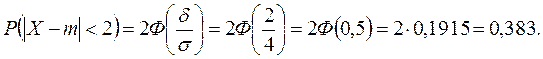 г) Вероятность того, что нормальная случайная величина Х отклонится от математического ожидания на величину, меньшую d =2, равна: