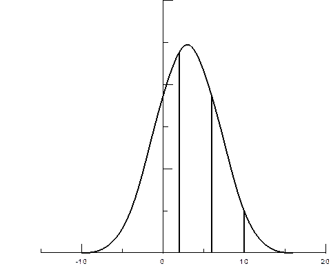 Рис. 6. Нормальная кривая для случайной величины Х ~ N (3; 4) Решение. Математическое ожидание случайных ошибок равно нулю m =0. Тогда вероятность того, что нормальная случайная величина Х отклонится от математического ожидания на величину, меньшую d =15, равна: