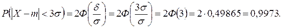 ПРИМЕР 5. Доказать правило «3 s». Решение. Вероятность того, что нормальная случайная величина Х отклонится от математического ожидания на величину, меньшую d= 3 s, равна: