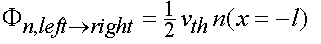 где коэффициент ½ означает, что половина электронов в плоскости с координатой x = -l движется налево, а вторая половина – направо. Аналогично, поток электронов через x = 0 приходящий справа со стороны x = +l будет равен: