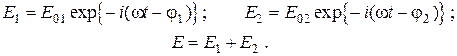 где E 0 – действительная амплитуда световой волны. Рассмотрим суперпозицию двух линейно поляризованных в одном направлении волн с различными амплитудами:
