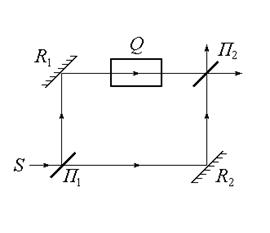 Другой пример интерферометра по методу деления амплитуды – интерферометр Маха–Цендера (рис.5.2). По изменению интерференционной картины и длине пути светового пучка в ячейке Q можно с большой точностью определить относительный показатель преломления исследуемого вещества ячейки.
