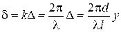 Разность фаз между волнами в точке наблюдения при этом равна: