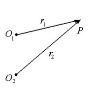 Временная и пространственная когерентность. Необходимое условие существования интерференции можно сформировать в следующем виде: для возникновения интерференции необходимо, чтобы разность фаз между интерферирующими волнами (см. (5.4)) сохраняла свое значение за время усреднения. Поэтому и вводят понятие когерентных колебаний, для которых разность фаз за время наблюдения остается неизменной. При описании интерференционных явлений часто используют понятия временной и пространственнойкогерентности. Временную когерентность обычно связывают со степенью монохроматичности волн (например, в интерферометре Майкельсона при рассмотрении осевых пучков), а пространственную когерентность – с геометрией эксперимента (как в опыте Юнга или при рассмотрении интерференции от протяженных источников света). Рассмотрим условие возникновения интерференции с более общих позиций. Пусть две волны одинаковой частоты w, распространяющиеся от точечных источников О 1 и О 2, достигают точку наблюдения Р через различные интервалы времени t 1 и t 2 (