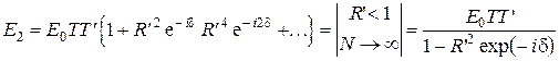 Запаздывание последующей волны относительно предыдущей за счет прохождения волны в пластинке учтем множителем е- id. Суммарная амплитуда E 2 прошедшей волны определяется суперпозицией всех прошедших пластинку волн: