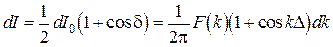 Принцип Фурье-спектроскопии. Пусть излучение немонохроматично и обладает непрерывным спектром. В интервале волновых чисел от k до k+ d k интенсивность определяется спектром F (k) и интервалом d k: