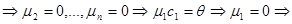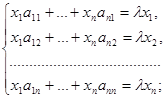 Однородная система n линейных уравнений с n неизвестными x 1, ..., xn имеет ненулевое решение. Поэтому ее определитель равен нулю