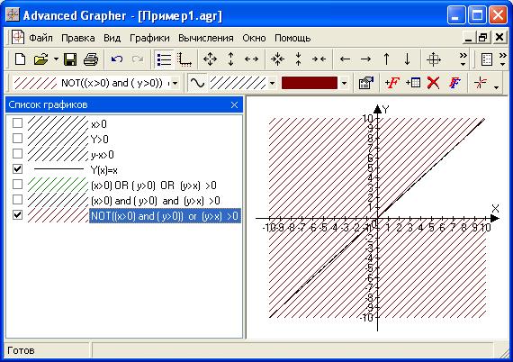 Вы также можете использовать одну или две переменные, например, X, Y, A или T (в зависимости от ситуации). Дополнительная информация Пример работы с неравенсвами. Рассмотрим три неравенства: x ≥ 0, y ≥ 0, y ≥ x. Графическая интерпретация неравенств и запись на Фортране соответствующих отношений показаны в таблице: