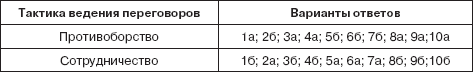 Ключ к тестовому заданию «Как вести себя на переговорах?»
