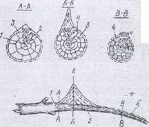 чтобы древесные материалы загорелись, их необходимо предварительно подогреть. При температуре 100—150 °С происходит испарение воды, содержащейся в этих материалах. С повышением температуры наступает процесс разложения материала с возгонкой летучих веществ, образующих с воздухом горючую смесь, которая воспламеняется при 270—290 °С. При температуре 400—450 °С разложение древесины и выделение ^горючих газов завершается, древесина обугливается, и дальнейшее горение угля происходит без пламени; температура может достигать 1000 °С. При горении от выделяющегося тепла подогреваются соседа ние участки и внутренние слои горючего материала, вследствие чего горение постепенно распространяется как по поверхности, так и в глубину (рис. 3). Нетрудно понять что если.материал сухой, то на испарение влаги и, следовательно, на подготовку его к воспламенению требуется меньше тепла, чем при влажном материале. Поэтому сухие древесные материалы легче загораются и горение быстрее распространяется по их поверхности. Чем больше влажность, тем медленнее распространяется горение. При определенной ее величине тепла, попадающего на соседние с горящими участки, окажется недостаточно для их подсушки и подогрева до нужной температуры. Тогда горение распространяться не будет. : _ Различают два типа горения лесных горючих материалов — пламенное и беспламенное (Амосов, 1958). Каждый тип горения может переходить в другой и имеет обе стадии — пламенную и беспламенную (горение углей). В зависимости от типа горения одна из них является преобладающей. Напочвенный покров с мелким опадом, хвоя и мелкие сучья горят преимущественно пламенем. При возрастании толщины сгорающего слоя в глубине его наблюдается беспламенное горение. Так бывает при горении торфа, лесной подстилки, валежника.