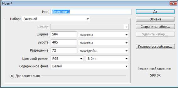 Практическое занятие 1 Из меню File (Файл) вызовите команду New (Новый) или воспользуйтесь горячими клавишами < Ctrl> +< N>. Появляется диалоговое окно New (Новый документ), в котором устанавливаются параметры документа. Установки в окне New производятся в полях Name (Имя), Image Size (Размер изображения), Contents (Содержимое).