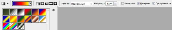 · образец градиента. Откройте список образцов. Двойной щелчок на образце открывает диалоговое окно, в котором написано имя градиента. Найдите образец Foreground to Background (От рабочего цвета к фоновому). При изменении одного из основных цветов меняется цвет в образце градиента; · Тип (линейный, радиальный, конический и т. д.); · Mode (Режим наложения); · Opacity (Непрозрачность); · Reverse (Инверсия); · Dither (Дизеринг) (Сглаживание); · Transparency (Прозрачность). · выберите образец. В поле документа нажмите левую кнопку мыши и перетащите курсор по предполагаемой линии цветовой растяжки. Длина перехода определяются линией, проведенной маркером мыши (пример, Ex-15). · Попробуйте все установки параметров палитры 2.1. Создание «собственного» градиента · откройте новый файл; · щелкните на образце градиента в окне на панели свойств; · в открывшемся окне Gradient Editor (Редактор градиента) показаны все образцы. Это позволяет легко выбрать нужный вариант редактирования;