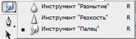 Ретушью называется изменение (коррекция) фотоизображения с целью устранения дефектов. К инструментам ретуширования относятся: Clone Stamp (Штамп), Pattern Stamp (Узорный штамп), Smudge (Палец), Sharpen (Резкость), Blur (Размытие) и инструменты тонирования (Осветлитель, Затемнитель, Губка) группы Dodge (Осветление).