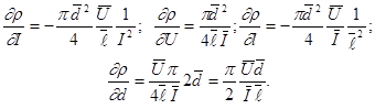 Площадь поперечного сечения S рассчитывается по измеренному значению диаметра d: Таким образом, значения величин l, d, U, I можно получить в результате прямых измерений, а удельное сопротивление можно вычислить по формуле