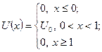 Требуется найти решения данного уравнения, ограниченные, непрерывные и дифференцируемые во всем интервале Рассмотрим случай прямоугольного потенциального барьера, который описывается кусочно-постоянной потенциальной функцией