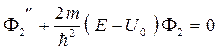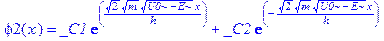 > eq1: =diff(phi1(x), x$2)+(2*m/h^2)*E*phi1(x); eq2: =diff(phi2(x), x$2)+(2*m/h^2)*(E-U0)*phi2(x); eq3: =diff(phi3(x), x$2)+(2*m/h^2)*E*phi3(x);
