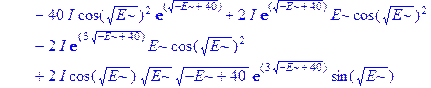 Значения совпадают. Более того, анализируя структуру выражений, можно заметить, что они зависят от разности U0 (в нашем примере 40) и E, которая стоит под корнем. При вычислениях мы предполагали E< U0. Можно предположить, что при E> U0, поскольку разность E – U0 сменит знак, появится мнимая единица и экспоненты в нашем выражении для T дадут тригонометрические функции, и наше вычисленное T перейдет в выражение (1.14) для случая E> U0. Действительно, легко видеть, что в (1.14) оба случая представляют собой практически одно и то же выражение, которые переходят одно в другое при смене знака E – U0. Проверим, подставив в T и Q вместо E одно и то же значение E> U0: > evalf(subs(E=50, T)); evalf(subs(E=50, Q));