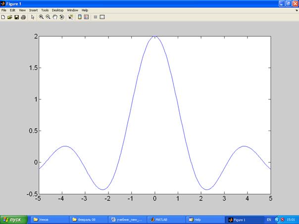 Рис. 2.4. Пример построения графика функции от одной переменной в MATLAB
