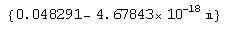 Нельзя не обратить внимания, насколько компактнее, по сравнению с Maple, система Mathematica выдала решение! А ведь это то же самое решение, в чем мы сейчас убедимся. Это является проявлением уже упоминавшейся несколько большей оптимальности расчетов в Mathematica. Выполняем операторы присваивания: f1[x]=f1[x]/.r; f2[x]=f2[x]/.r; f3[x]=f3[x]/.r; (структура операторов получилась несколько странная с точки зрения логики, но в каждой системе иногда надо подстраиваться под общее строение и синтаксис языка). Вычисляем коэффициент прохождения (напомним, имея в виду (1.10), можно получить амплитуду прошедшей сквозь барьер волны S, просто подставив S=f3[x]/.x®0