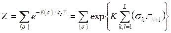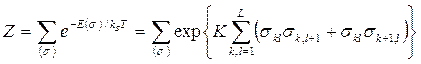 Здесь параметр J определяет энергию взаимодействия пары соседних спинов, равную – J и + J соответственно для одинаковых и противоположных ориентаций спинов. Основная задача состоит в вычислении статистической суммы