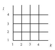 Рис. 4.3.Квадратная решетка спинов размера 4 x 4 (