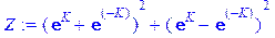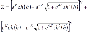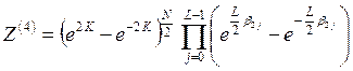 Теперь можно сделать шаг вперед и проверим выражение (4.15), сравнив его с (4.14). Сделаем это для N=4. > restart: > N: =4: > Z: =(exp(K)*(exp(h)+exp(-h))/2+exp(-K)*sqrt(1+exp(4*K)*((exp(h)-exp(-h))/2)^2))^N+(exp(K)*(exp(h)+exp(-h))/2-exp(-K)*sqrt(1+exp(4*K)*((exp(h)-exp(-h))/2)^2))^N;