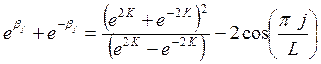 Освоив одномерный случай как в отсутствии, так и в присутствии магнитного поля и имея полную уверенность в том, что наша программа правильно работает в этом случае, можно обобщить ее на двумерную квадратную решетку. Непосредственно вычисляем статистическую сумму по формуле (4.8) и сравниваем с решением Кауфман (4.10) – (4.12). Начнем с наименьшей решетки L=2, т.е. размера 2 x 2. > restart: with(linalg): > L: =2: > for j from 1 to 2*L-1 do beta_[j]: =arccosh((ek^2+1/ek^2)^2/(ek^2-1/ek^2)/2-cos(Pi*j/L)): od: > beta_[0]: =ln(ek^2*(sqrt(ek^2)-1/sqrt(ek^2))/(sqrt(ek^2)+1/sqrt(ek^2))): > c: =(ek^2-1/ek^2)^(L^2/2): Здесь вычислили величины Далее вычисляем слагаемые формулы (4.10) и всю сумму: > z1: =c*product(exp(L*beta_[2*j1+1]/2)+1/exp(L*beta_[2*j1+1]/2), j1=0..L-1): > z2: =c*product(exp(L*beta_[2*j2+1]/2)-1/exp(L*beta_[2*j2+1]/2), j2=0..L-1): > z3: =c*product(exp(L*beta_[2*j3]/2)+1/exp(L*beta_[2*j3]/2), j3=0..L-1): > z4: =c*product(exp(L*beta_[2*j4]/2)-1/exp(L*beta_[2*j4]/2), j4=0..L-1): > a1: =simplify(z1, symbolic): a2: =simplify(z2, symbolic): a3: =simplify(z3, symbolic): a4: =simplify(z4, symbolic): > Z: =simplify(a1+a2+a3+a4)/2;
