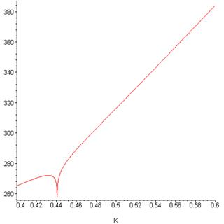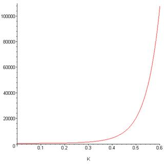 и применим оператор построения графиков, например, для L=3: > plot({f3}, K=0..0.6);