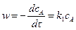 откуда видно, что концентрация реагирующего вещества линейно убывает со временем. Единица измерения константы скорости совпадает с единицей измерения скорости. Подставляя в (5.3)