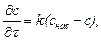 где с – концентрация вещества в растворе; V – объем раствора, определяется законом Фика;