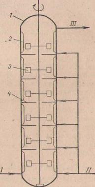 Рис. 54. Схема секции скребкового кри- Рис. 56. Схема кристаллизатора 1-наружная труба; 2 -внутренняя труба; 3- 1- корпус; 2 - отражатель; 3-пере- Линии: I-сырье; II-холодный растворитель; III — суспензия 63. Принципиальная технологическая схема фильтровального отделения установки депарафинизации. Фильтры. Для отделения кристаллов парафина и церезина от раствора масла применяют барабанные вращающиеся фильтры двух типов: вакуумные и работающие под давлением.