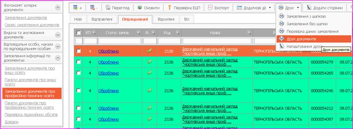 Заходите у вкладку «Опрацьовані», виділяєте потрібне замовлення, далі «Друк»-«Друк документів»: