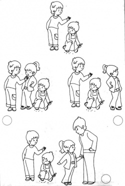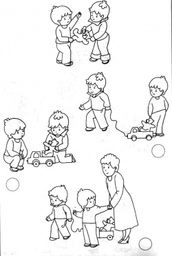 Оценка: 3 балла – ребенок выбрал ситуацию, в которой персонаж сам помогает сверстнику (помогает подняться упавшей девочке, защищает слабого, помогает девочке построить башню, находит выход из конфликтной ситуации (совместная игра детей)). 2 балла – ребенок выбрал ситуацию, в которой персонаж видит затруднения другого, но не помогает ему сам, а обращается ко взрослому (предлагает взрослому помочь упавшей девочке, защитить малыша и т.д.). 1 балл – ребенок выбирает ситуацию, в которой персонаж не стремится помочь другому ребенку.