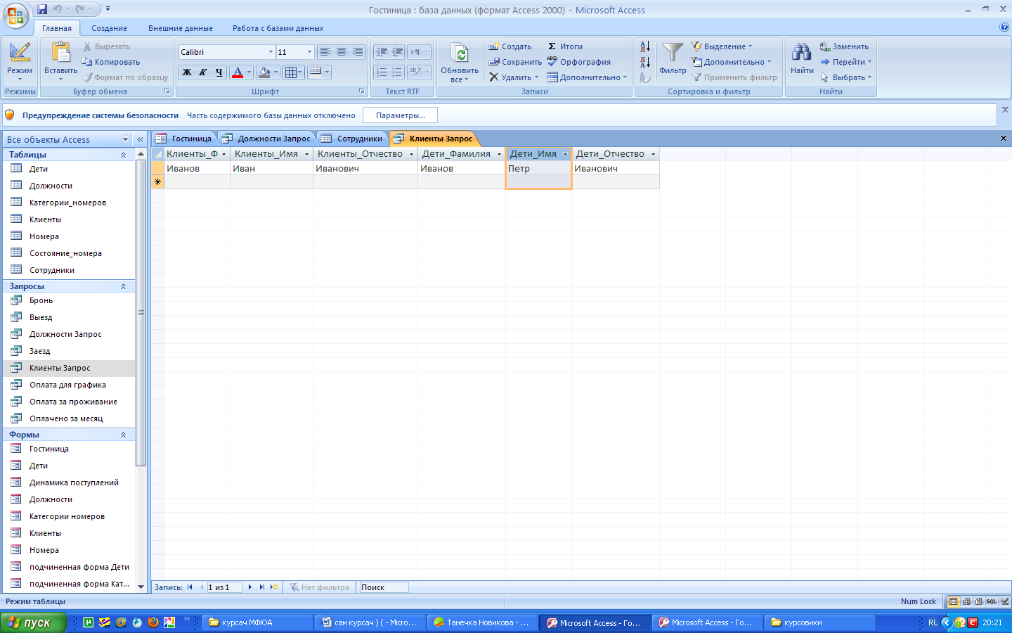 Рис. 10. Результат запроса по таблицам «Клиенты», «Дети».