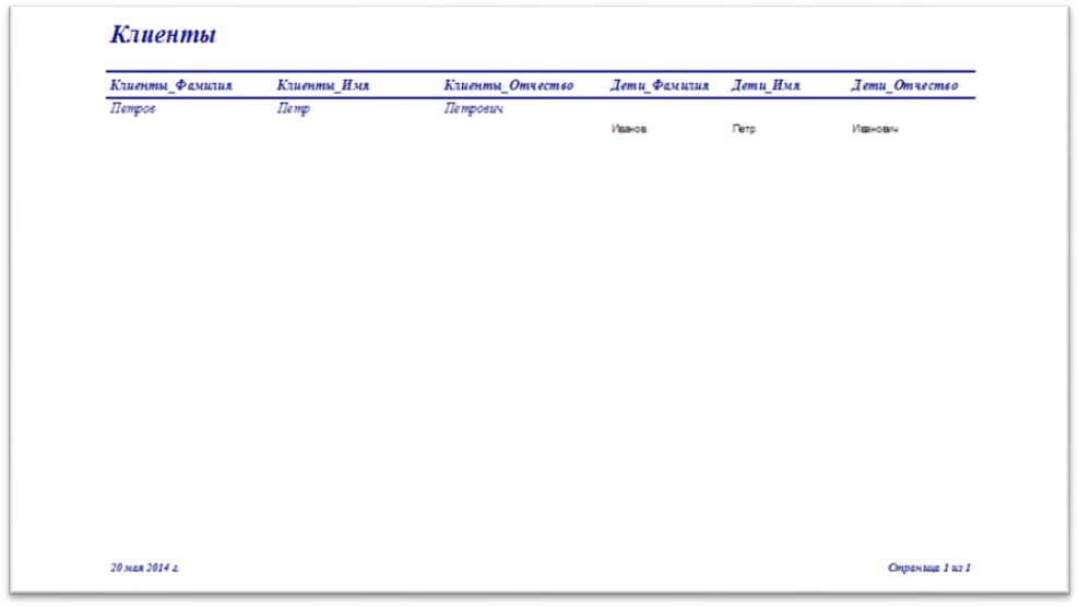 В базе данных имеется 6 отчетов: 1. Бронь 2. Заезд 3. Выезд 4. Клиенты 5. Оплата за проживание 6. Оплачено за месяц Рассмотрим несколько отчетов: Отчет про клиентов с детьми: