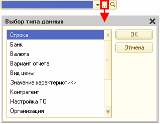 Помимо рассмотренных выше типов значения реквизита, в форме можно вводить значения из заполненных списков. Если тип значения реквизита формы не является одним из так называемых «примитивных типов» (чисел, строк, дат), в поле ввода такого реквизита (или в поле выбора) присутствует кнопка Выбрать. При нажатии этой кнопки на экран будет выведен список элементов соответствующего типа, из которого требуется выбрать необходимое значение.