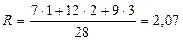 Анализ экспертной оценки риска показывает: из 28 проанализированных факторов риска в ООО «АВИА-Кос» магазин «Альпари»: 9 характеризуют высокий уровень риска, 12 – средний уровень, и 7 – низкий уровень. Метод Дельфи предполагает, что в результате оценки должна получиться величина коэффициента риска, которая располагается в интервале от 1 до 3. Если коэффициент риска находится в интервале [1; 1, 7], то стратегия обеспечения доходности предпринимательской деятельности разрабатывается в условиях высокого риска. Если значения коэффициента входят в интервал [1, 7; 2, 4], то стратегия разрабатывается в ситуации среднего риска. Если величина коэффициента принимает значения [2, 4; 3], то риск минимален [1]. Оценим риск в ООО «АВИА-Кос» по формуле (2.3.2):