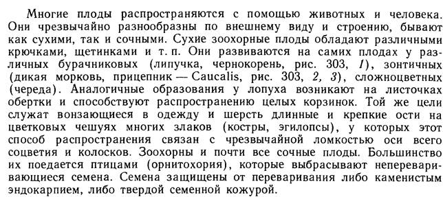 • Ягода - многосемянный невскрывающийся плод с сочным мясистым эндо- и мезокарпом и тонким пленчатым или кожистым экзокарпом, в который погружены семена. Например, плоды томата и картофеля возникают из гинецея, образованного двумя сросшимися плодолистиками. Верхняя синкарпная ягода - у винограда, хурмы, томата; нижняя синкарпная ягода - у фейхоа; нижняя паракарпная ягода - у крыжовника и смородины. Изредка у ягод имеется лишь одно относительно крупное семя (барбарис, авокадо). • Гесперидий, или померанец, - формируется из синкарпного гинецея, образованного 8-12 плодолистиками с верхней завязью. Это плод цитрусовых из семейства рутовых (мандарин, апельсин, грейпфрут, лимон). Экзокарп - желтая ткань с масляными желёзками и различным набором эфирных масел, покрытая кутикулой и слоем воска. К экзокарпу прилежит мезокарп - рыхлая белая ткань. Эндокарп пленчатый. Субэпидермальные клетки эндокарпа формируют соковые мешочки на длинных ножках, которые заполняются клеточным соком и образуют съедобную мякоть плода. • Тыквина - плод, близкий к ягоде, образуется из паракарпного гинецея, состоящего из трех плодолистиков с нижней завязью, но отличающийся кожистым жестким экзокарпием (представители семейства тыквенных). Мякоть плода образована мезо- и эндокарпием (огурец, тыква, дыня) или разросшимися плацентами (арбуз). • Коробочка - многосемянный плод с сухим вскрывающимся перикарпием. Возникает из гинецея, образованного двумя плодолистиками и более. Коробочки очень варьируют по форме и способам вскрывания. Они могут вскрываться зубчиками на верхушке (примулы); дырочками (мак); крышечкой (подорожник, белена); створками, расходящимися по месту срастания плодолистиков (хлопчатник), по средней жилке плодолистиков (тюльпан, ирис, лилия). У чистотела большого коробочка удлиненная, стручковидная, вскрывается двумя створками. • Схизокарпий - ценокарпий, не вскрывающийся, а распадающийся на отдельные доли, что нашло отражение в его названии (от греч. schizo - раскалываю). Схизокарпий распадается продольно на отдельные замкнутые или вскрывающиеся доли мерикарпии, содержащие от одного до нескольких семян. Плоды мальвовых (канатник) распадаются на незамкнутые с брюшной стороны мерикарпии, называемые калачиками. Схизокарпий сельдерейных и аралиевых (вислоплодник) состоит из двух мерикарпиев, висящих на карпофоре, который представляет собой сросшиеся брюшные участки двух плодолистиков. Схизокарпий кленовых (двукрылатка) состоит, как правило, из двух (реже трех и более) мерикарпиев, каждый из которых имеет вырост (крыло). Схизокарпий многих яснотковых и бурачниковых называют ценобием. Он возникает из двугнездной завязи, у которой на ранних стадиях развития появляются перегородки, разделяющие ее на четыре гнезда. В каждом гнезде расположено по одному семязачатку. Зрелый плод состоит из четырех долей. • Стручок - сухой двугнездный многосемянный плод, возникает из гинецея, образованного двумя сросшимися плодолистиками. По краям срастания плодолистиков на рамке расположены семена. Стручки бывают невскрывающимися и вскрывающимися (вскрываются двумя швами по месту срастания краев плодолистиков от основания к верхушке). Стручки могут быть членистыми (редька дикая). Длина стручка превышает ширину в 4 раза и более (горчица, капуста), у стручочков длина при