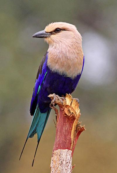 Сизоворонковые питаются насекомыми и любят высматривають свою добычу с возвышенного места. На фото - Синебрюхая сизоворонка (Coracias cyanogaster)