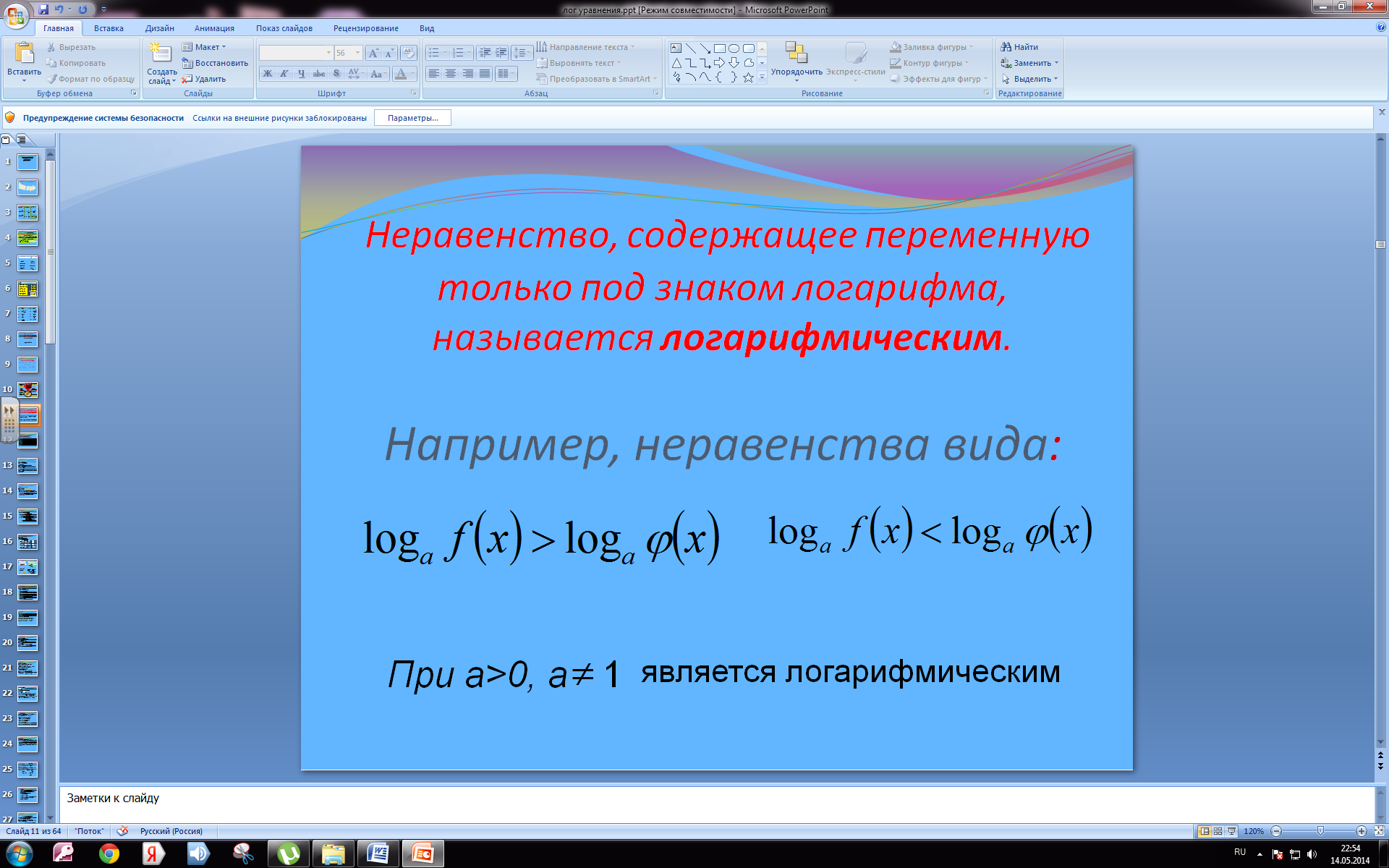 I Логарифмические уравнения