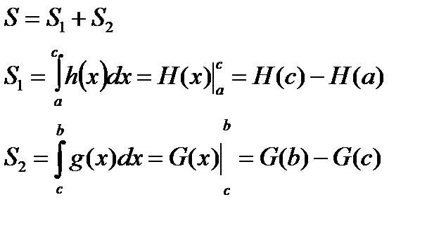 (нижнее основание – ось Ох, верхних оснований несколько, т.е. функции h(x) и g(x) являются верхними основаниями каждая над своей частью).