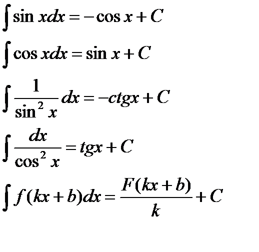 Но для интегрирования функций полезно вспомнить основные формулы интегрирования: