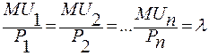 2) полезность, получаемая от последней денежной единицы, израсходованной на приобретение какого-либо блага должна быть одинакова для всех благ.