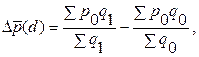 Абсолютный прирост (уменьшение) средней цены за счет структурных изменений рассчитывается как разность числителя и знаменателя индекса цен структурных сдвигов: