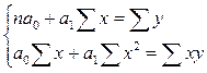 Параметры линейного корреляционного уравнения находят, используя метод наименьших квадратов из системы нормальных уравнений: