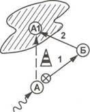 Атакующая команда выполняет штрафной удар (рис. 224). Обороняющиеся устанавливают стенку из трех защитников. За мгновение перед выполнением удара игроки Б и В скрестными диагональными перемещениями уводят из стенки крайних защитников. Перед игроком А открывается возможность через бреши нанести удар в правый или левый угол ворот.