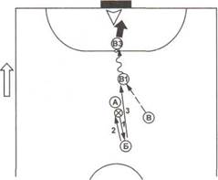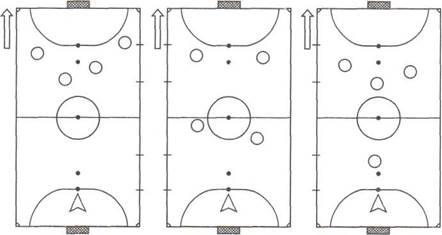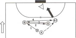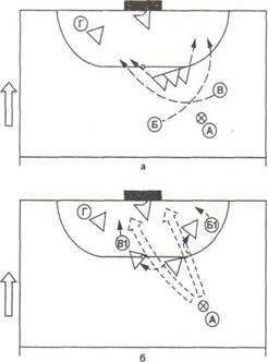 При игре с центровым атакующая команда может использовать две основные схемы расстановки игроков: 3+1 и 1+2+1 (рис. 229).