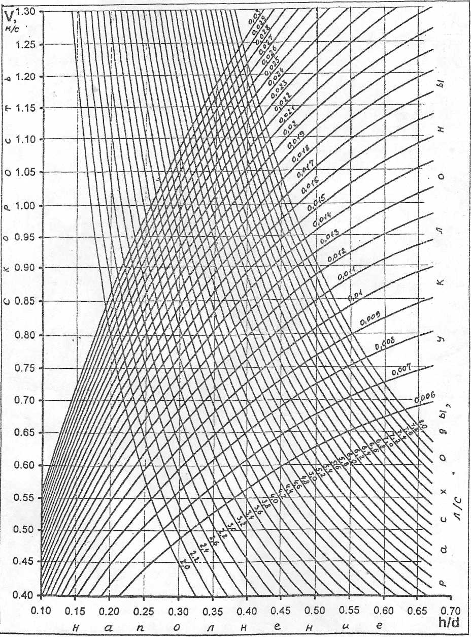 Приложение 4 НОМОГРАММА ДЛЯ РАСЧЕТА ВОДООТВОДЯЩИХ СЕТЕЙ