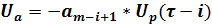 Включая фиктивное –am+1*Up(τ) при i = 0, которое является первым в цикле расчётов. Последнее произведение будет соответствовать i = m+1 и даст –a0*Up(τ -m-1). Дальнейшие расчёты произведений данного типа будут прекращены согласно условию, записанному в верхнем ромбе: i > m+1. Если это условие соблюдается (вариант «Да»), то совершается переход к расчёту произведений типа: